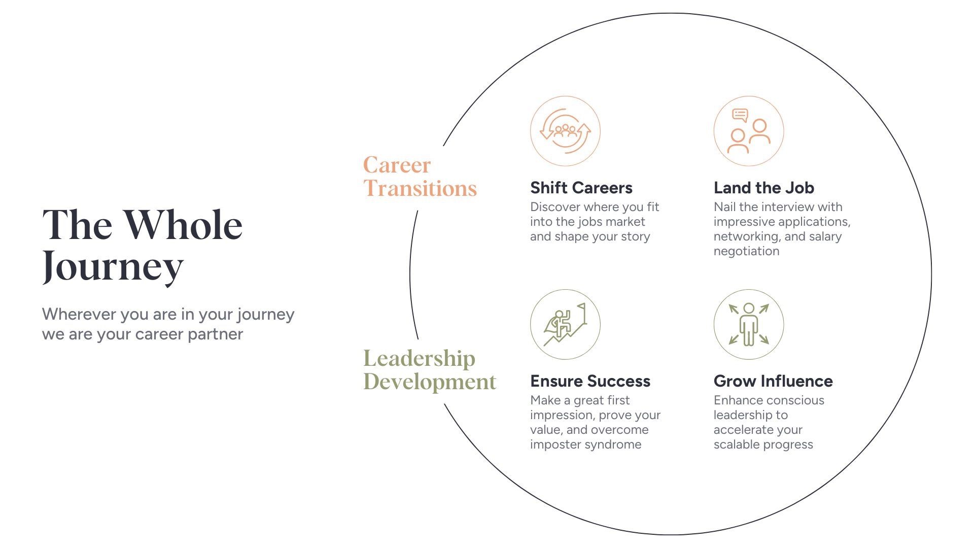 As your life-long career partner, together we increase your influence and effectiveness in landing your dream job and delivering scalable change.
